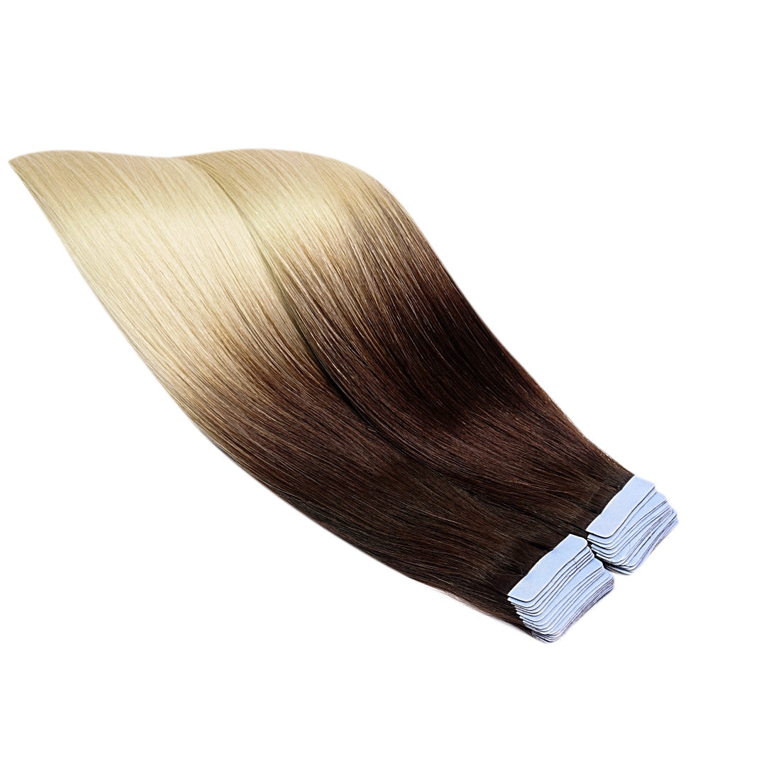 Im Falle von Tape in Extensions werden Strähnen aus Echthaar mit den Haaren der Kunden mit Hilfe von zwei Klebestreifen verbunden. Ein Streifen liegt unter dem Eigenhaar. Eine weitere, mit Klebeband ausgestattete Strähne, wird dann darüber gelegt usw..